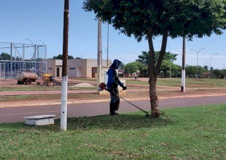 Durante essa semana a equipe da Secretaria esta realizando os serviços nas Praças e todos os canteiros. Nos locais estão sendo realizados serviços de roçada e limpeza em geral na praça e calçadas.